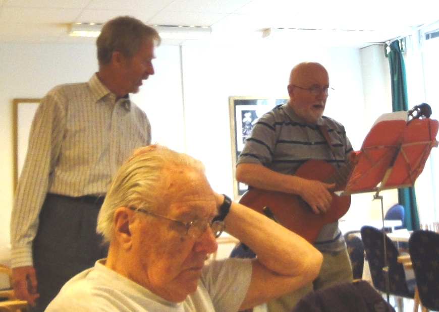 | Jan Skogman och Arne Jansson leder allsången. |